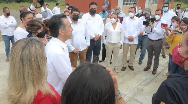 Acompañado de los titulares de la SEP y SEV, Delfina Gómez Álvarez y Zenyazen Escobar García, el gobernador Cuitláhuac García Jiménez entregó formalmente seis aulas didácticas, dirección, sanitarios y obra exterior con una inversión de 3 millones 107 mil 532 pesos, correspondientes al Fondo de Aportaciones Múltiples (FAM) 2020.