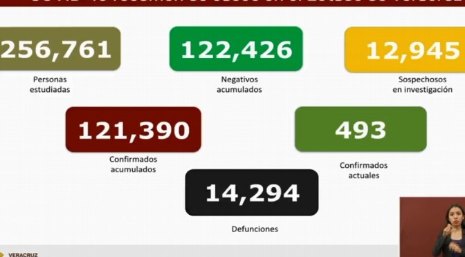 Asimismo, el director de Salud Pública, Salvador Beristain Hernández, dio a conocer que ya se acumulan 121 mil 390 casos confirmados, lo que representa un incremento 39 contagios con relación a los reportados el día de ayer. Hay 493 casos activos.null