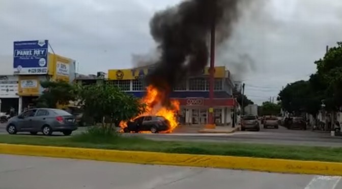 Los hechos ocurrieron en la avenida Rafael Cuervo y esquina Cabo Blanco de la colonia Astilleros, donde un automóvil marca Seat, tipo Ibiza, con placas de circulación XAL 385 A del estado de Tamaulipas, el cual se prendió en llamas.null
