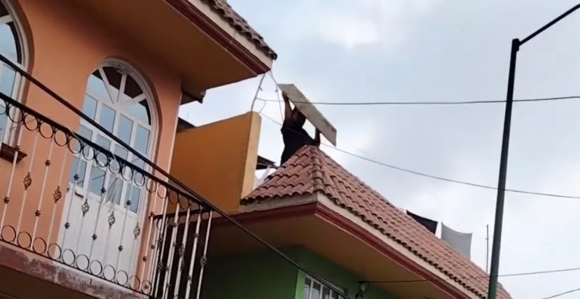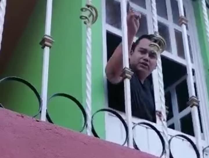 En uno de los videos compartidos por la usuaria se observa el momento en el que el enfurecido hombre lanza piedras y ladrillos desde su azotea con gritos de amenazas constantes.