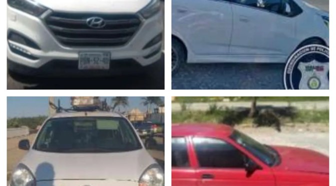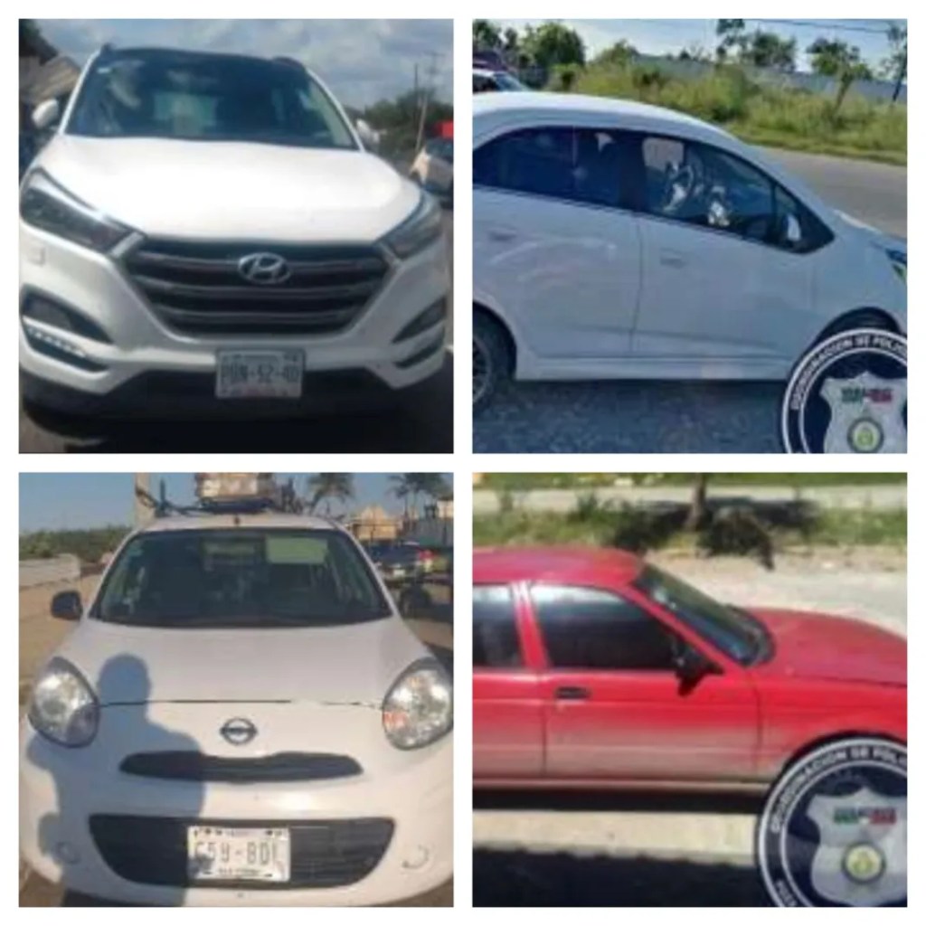Dentro de las unidades recuperadas se encuentran: un Nissan Tsuru placas YKL1094, una Hyundai Tucson placas PBN5240, un Chevrolet Beat YME942A, dos Nissan March placas C58BDL y TUM496A, un Nissan NP300 placas WF2718A, una Chevrolet Cavalier placas YJH6005 y dos motocicletas Honda.