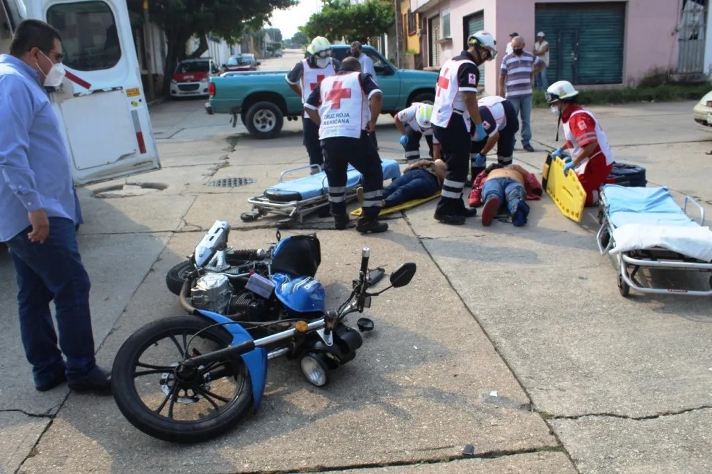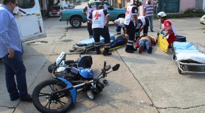Coatzacoalcos, Ver. 01 de noviembre 2021.- Un hombre y una mujer quiénes viajaban en una motocicleta resultaron con lesiones y probables fracturas en diferentes partes del cuerpo luego de ser embestidos por una camioneta en la colonia Benito Juárez Norte.