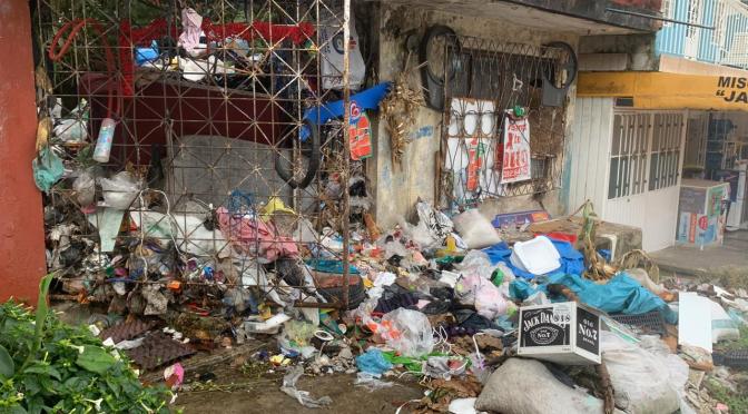Miles de bolsas de plástico por los suelos, recipientes infestados de larvas del mosco transmisor del dengue y papeles sucios y plásticos tapando el paso.