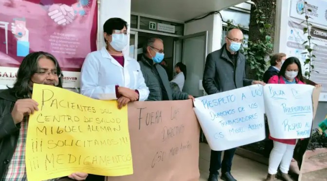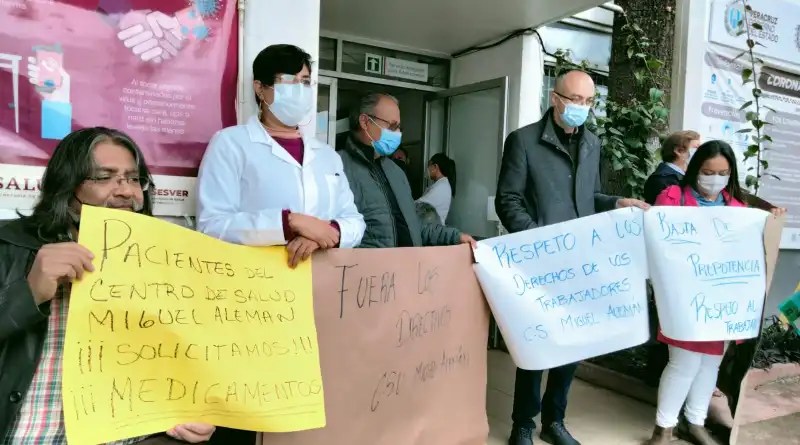 Trabajadores del Centro de Salud Urbano Miguel Alemán realizaron un paro de brazos caídos para denunciar el acoso laboral, maltrato, prepotencia de sus autoridades, encabezados por su director René Arboleda Ruiz y la administradora Carolina Sonk Rodríguez, por lo que suspendieron el servicio al público en general.