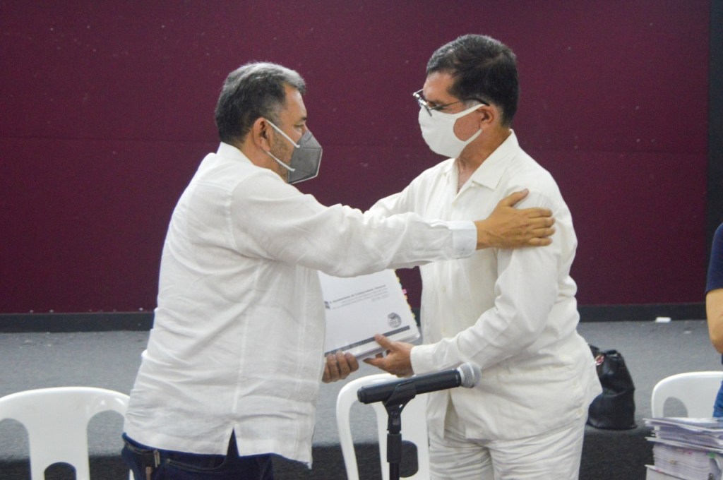 Coatzacoalcos, Ver., 1 de enero de 2022.- En un acto protocolario concluyó el proceso de entrega – recepción del Ayuntamiento de Coatzacoalcos entre los integrantes del Cabildo y servidores de la actual comuna encabezado por el alcalde Amado Cruz Malpica y de la saliente representada por el ex munícipe Víctor Carranza Rosaldo.