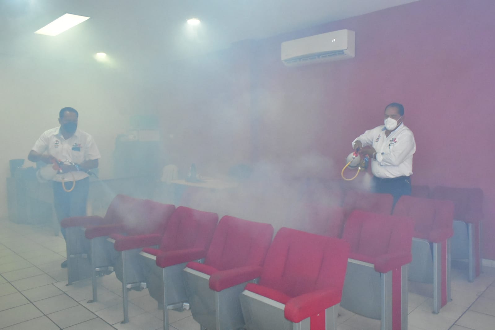 Aunado a esto también fue desinfectado el auditorio del Sindicato Azucarero «José Manuel Martínez R.» de la Sección 20, con esto se busca contener los contagios al interior de estos centros de concurrencia de suma importancia para la vida diaria de las familias del municipio, donde obreros del ingenio así como productores acuden diariamente a realizar diversos trámites, por ello la importancia de mantener un ambiente salubre.