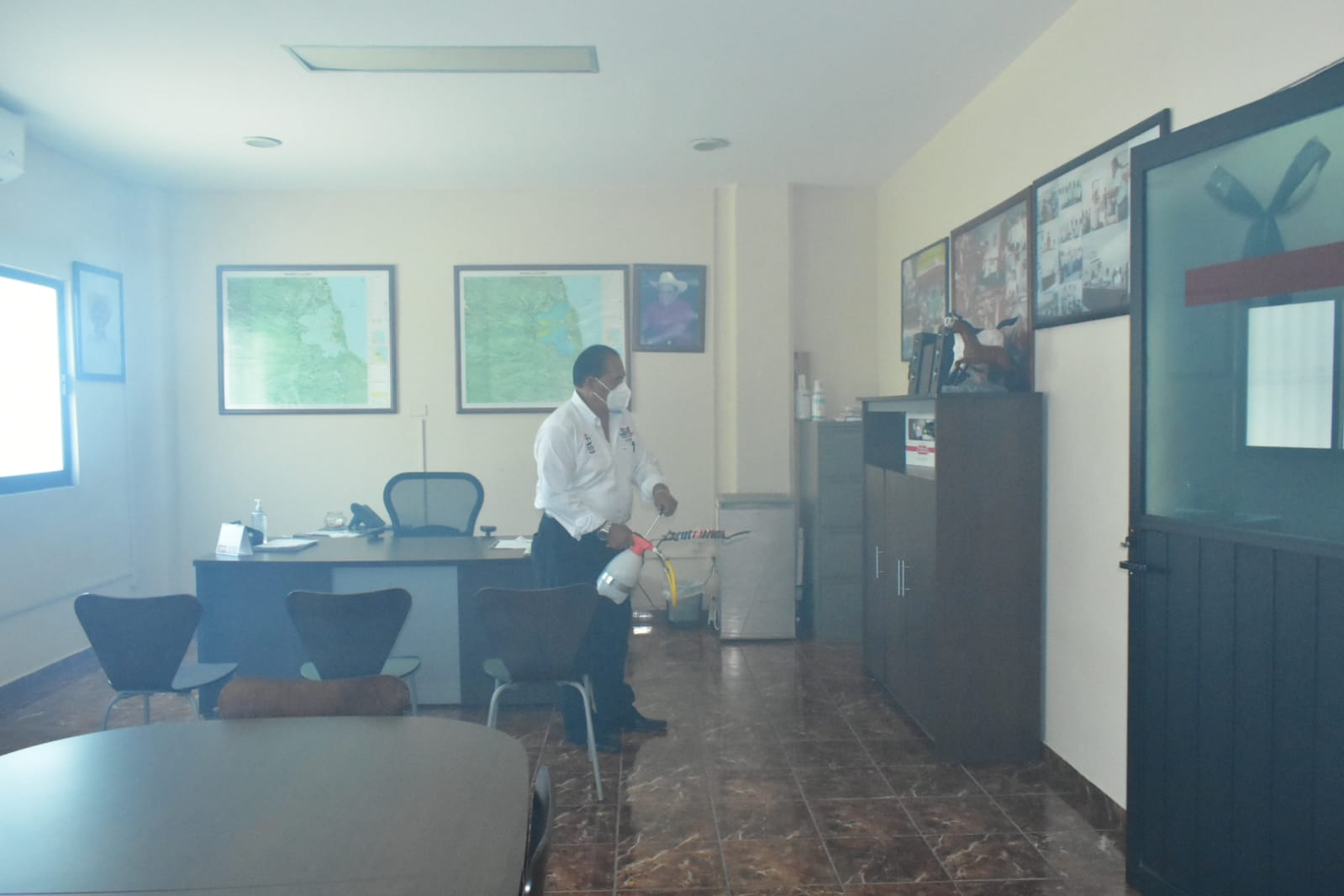 Este martes, por instrucciones del Presidente Municipal, Licenciado Eder Jero Hernández Lara, la Dirección de Salud del H. Ayuntamiento realizó una jornada de sanitización en las oficinas de la Asociación de Productores de Caña de la Confederación Nacional de Propietarios Rurales (CNPR) y la Asociación Cañera AC (antes CNC) del Ingenio La Gloria en la localidad del mismo nombre.