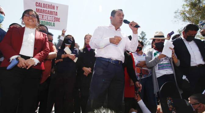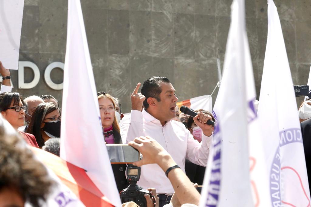 Como obradorista, Sergio Gutiérrez Luna se subió al templete donde estaban representantes populares de MORENA quienes se incorporaron a la movilización convocada por el Frente Nacional en Defensa de la Reforma Eléctrica que pugna por la baja de las tarifas de energía.