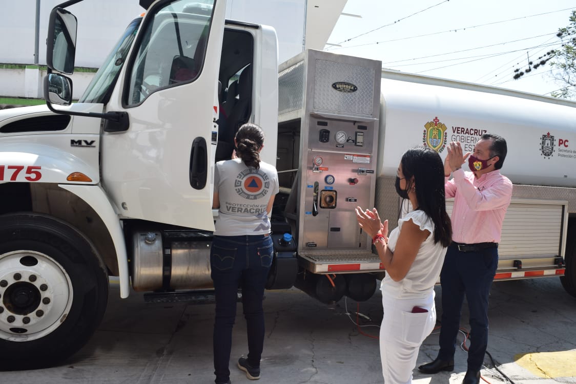 Actopan, Ver., a 22 de febrero de 2022.- Este martes, en un evento que tuvo lugar en la cabecera municipal, la Alcaldesa de Actopan, María Esther López Callejas, recibió de parte del Gobernador de Veracruz, Cuitláhuac García Jiménez las llaves de una pipa equipada para atender incendios y una nueva camioneta con características para uso en emergencias; mejorando las herramientas de las que dispone la Dirección Municipal de Protección Civil, esto ocurre durante las obras de rehabilitación de las instalaciones de dicho departamento.