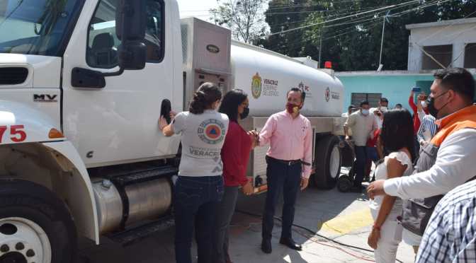 Actopan, Ver., a 22 de febrero de 2022.- Este martes, en un evento que tuvo lugar en la cabecera municipal, la Alcaldesa de Actopan, María Esther López Callejas, recibió de parte del Gobernador de Veracruz, Cuitláhuac García Jiménez las llaves de una pipa equipada para atender incendios y una nueva camioneta con características para uso en emergencias; mejorando las herramientas de las que dispone la Dirección Municipal de Protección Civil, esto ocurre durante las obras de rehabilitación de las instalaciones de dicho departamento.