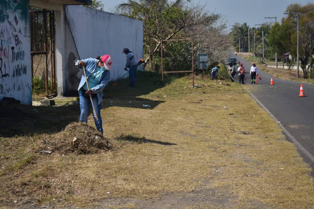 Los habitantes de la localidad de Playa de Chachalacas, celebraron la jornada de limpieza que encabezó el Alcalde de Úrsulo Galván, Licenciado Eder Jero Hernández Lara, este miércoles en la entrada a dicha comunidad.