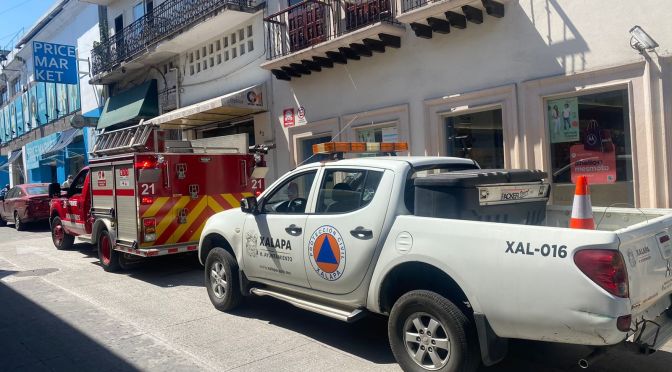 Xalapa, Ver.- La tarde de este sábado, se reportó un conato de incendio en la tienda Coppel, ubicada en la calle Juárez del centro de Xalapa.