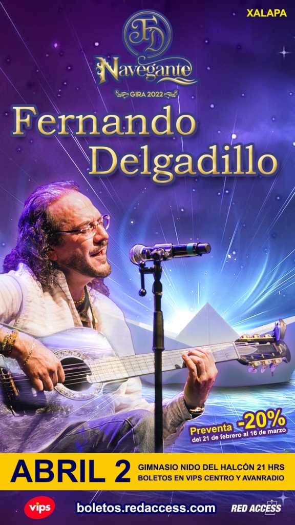 El cantautor mexiquense Fernando Delgadillo, reconocido como el creador de la canción informal, regresa a la ciudad de Xalapa después de casi 4 años de su última visita. El concierto acústico forma parte de su gira nacional Navegante que lo llevará a visitar también Monterrey, Querétaro, CDMX y Guadalajara, entre otras ciudades.