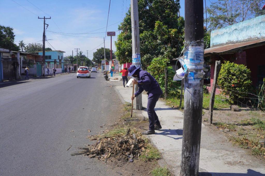 Desde temprana hora, una cuadrilla de trabajadores con escobas, rastrillos y machetes, quitó maleza y levantó basura acumulada en las aceras y sobre el pavimento, para luego empezar a pintar las guarniciones.