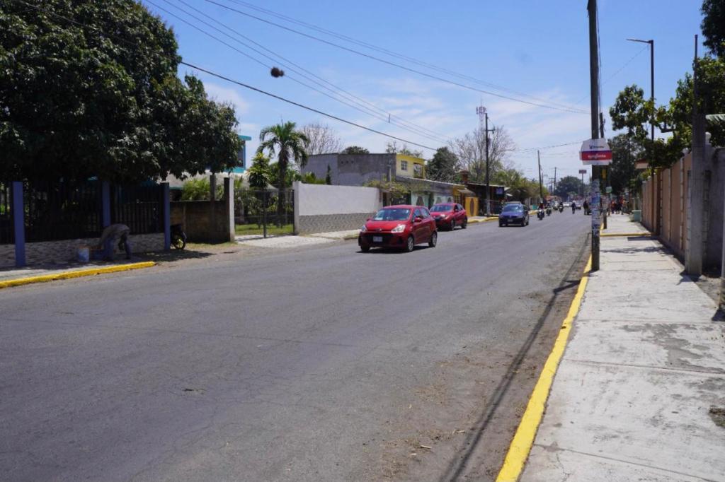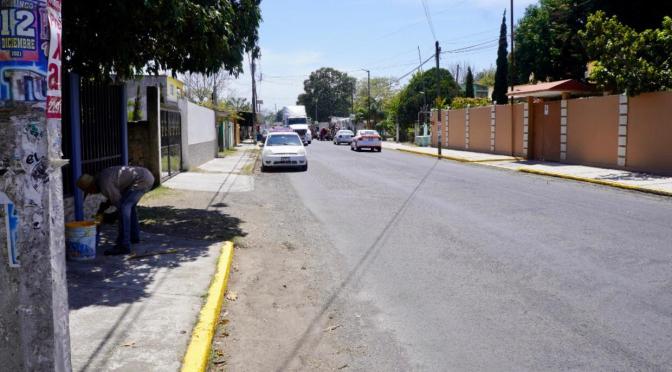 La Antigua, Ver.- Personal del H. Ayuntamiento de La Antigua y del área de Embellecimiento Urbano rehabilitó este sábado las guarniciones de una de las principales calles de la localidad de El Salmoral, por la que a diario transitan cientos de vehículos y peatones.