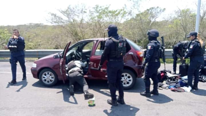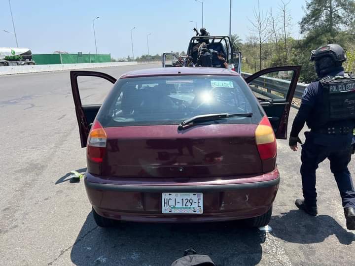 Por ello, indicaron se activó el Código Rojo, lo que permitió ubicar a los presuntos implicados, quienes viajaban a bordo de automóvil Pointer, con placas del Estado de Guerrero.