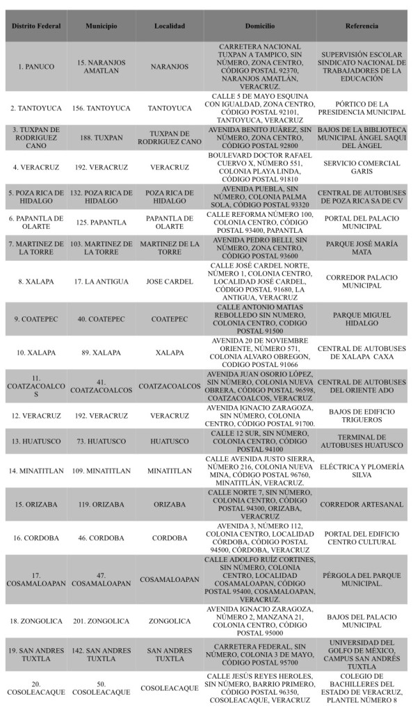 “En Veracruz, el Instituto Nacional Electoral instalará 3 mil 679 casillas, de las cuales 20 serán especiales para las personas que se encuentren en tránsito el día 10 de abril. Si una persona quiere conocer exactamente dónde votar, el procedimiento que debe seguir es muy sencillo: primero, debe ingresar a la liga https://ubicatucasilla.ine.mx/, como segundo paso deberá seleccionar la entidad de residencia, en este caso Veracruz, y el tercer paso consiste en ingresar la sección electoral, compuesta de cuatro números que se encuentran al frente de la Credencial para Votar”.