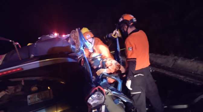 Plan del Río. – Fue en la madrugada de este sábado que una familia procedente de Toluca, con dirección al puerto de Veracruz impactó su automóvil contra un tráiler que transportaba block , que se dió a la fuga.