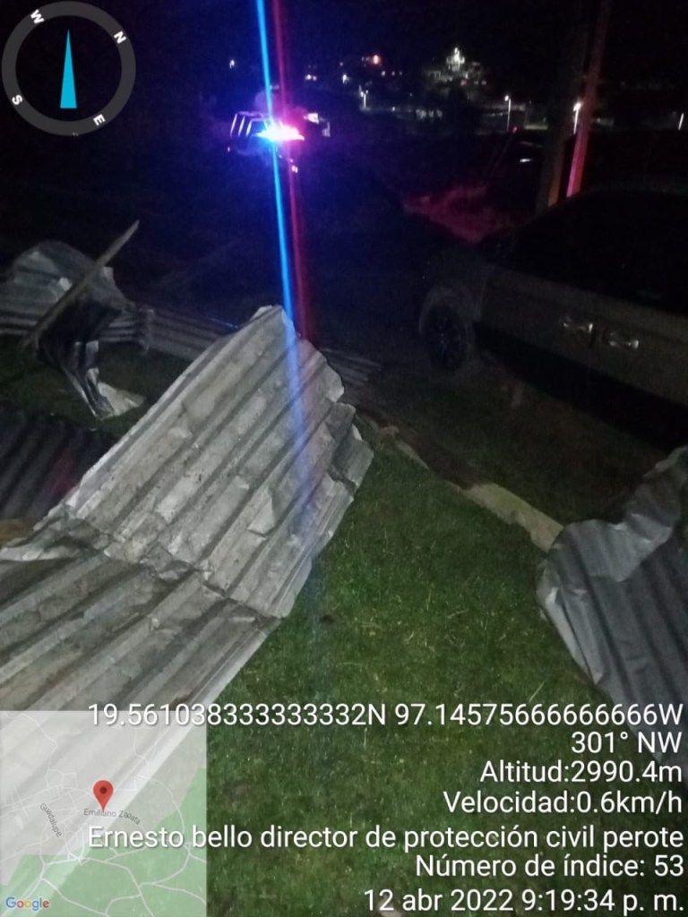 Los Pescados, Perote Ver.- El director de protección civil de Perote , Ernesto Bello Loranca informó sobre la afectación por tornado de baja intensidad que se registró en este municipio aproximadamente a las 5:30 de la tarde con un reporte a las siete de la noche en la comunidad de Los Pescados.