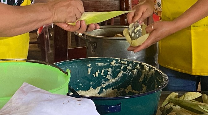 Doña Vicenta Trujillo Baez elaboraba los tamales de chile rojo y las tradicionales “torrejas” en esta Semana Santa.