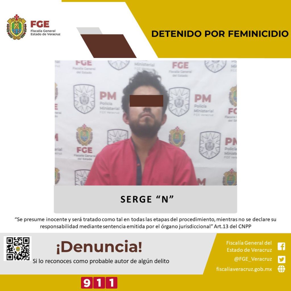 Xalapa, Ver., 22 de abril de 2022.- La Fiscalía General del Estado informa que este día, elementos de la policía ministerial cumplimentaron orden de aprehensión en contra de Serge “N”, por el presunto delito de feminicidio en agravio de la joven originaria de Agua Dulce, Juana “N”, suscitado en la ciudad de Xalapa, el pasado 20 de abril del presente año.