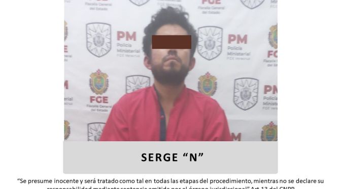 Xalapa, Ver., 22 de abril de 2022.- La Fiscalía General del Estado informa que este día, elementos de la policía ministerial cumplimentaron orden de aprehensión en contra de Serge “N”, por el presunto delito de feminicidio en agravio de la joven originaria de Agua Dulce, Juana “N”, suscitado en la ciudad de Xalapa, el pasado 20 de abril del presente año.