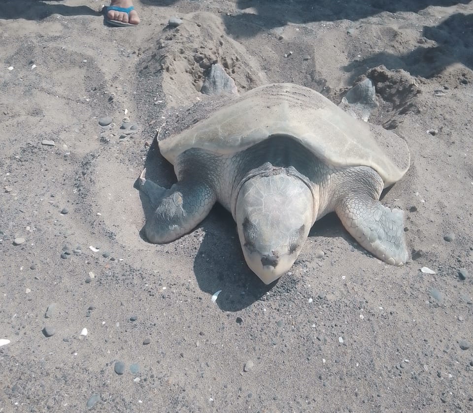 Este sábado, ante arribo de cientos de turistas a las playas de Úrsulo Galván, personal de la Dirección de Protección Civil Municipal en coordinación con elementos de la Marina Armada de México, acordonaron la zona donde una tortuga de la especie Lora salió del mar a desovar.