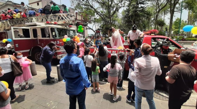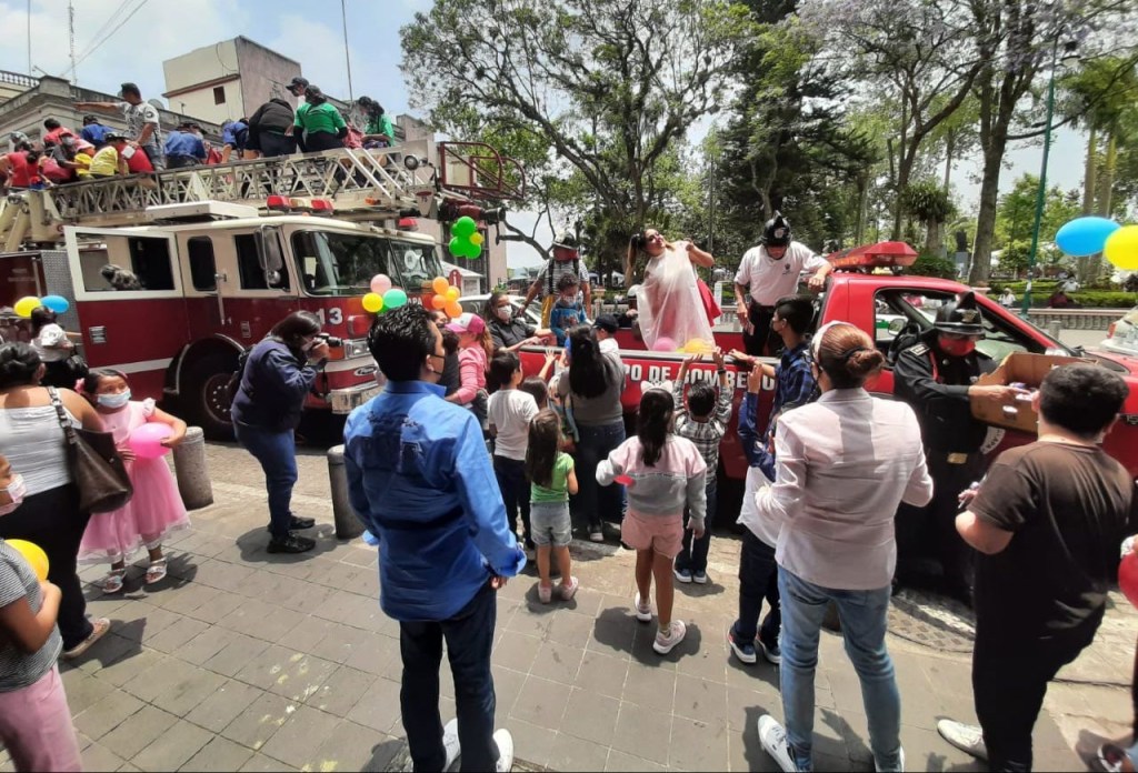 Xalapa, Ver.- En el marco del Día del Niño, el Cuerpo de Bomberos de Xalapa, recorrió diversas calles y avenidas de la ciudad, para llevar juguetes a los menores de la capital.