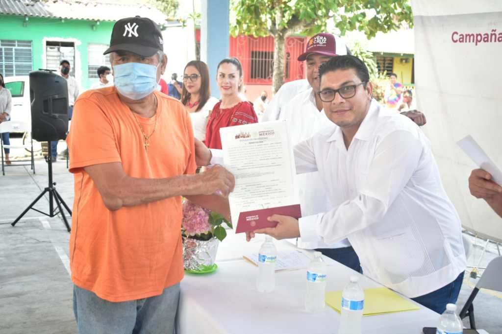 “El día de hoy, este trabajo que comenzó hace años se ve reflejado en frutos paras sus familias por que hoy este documento es el reflejo de esfuerzo, de perseverancia, de todos los que creyeron, este documento les dará certeza jurídica a ustedes y todas sus familias”, declaró el Alcalde.