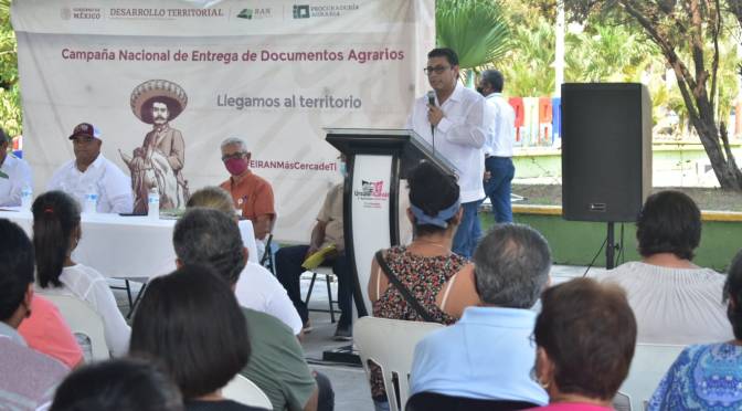 Úrsulo Galván, Ver. – Gracias a la coordinación entre los gobiernos federal, estatal y municipal, este viernes se dio certeza jurídica a las propiedades y parcelas de 324 familias de la localidad de Paso del Bobo mediante la campaña Nacional de Entrega de Documentos Agrarios impulsada por la Procuraduría Agraria y el Registro Agrario Nacional (RAN).