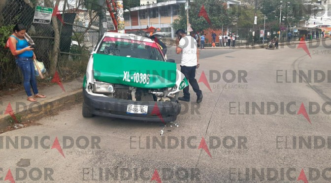 Los primeros reportes señalan que se habrían impactado de frente. Por el golpe, el taxi marcado con el número económico XL-10386 se estampó contra un poste de luz, en su parte trasera.