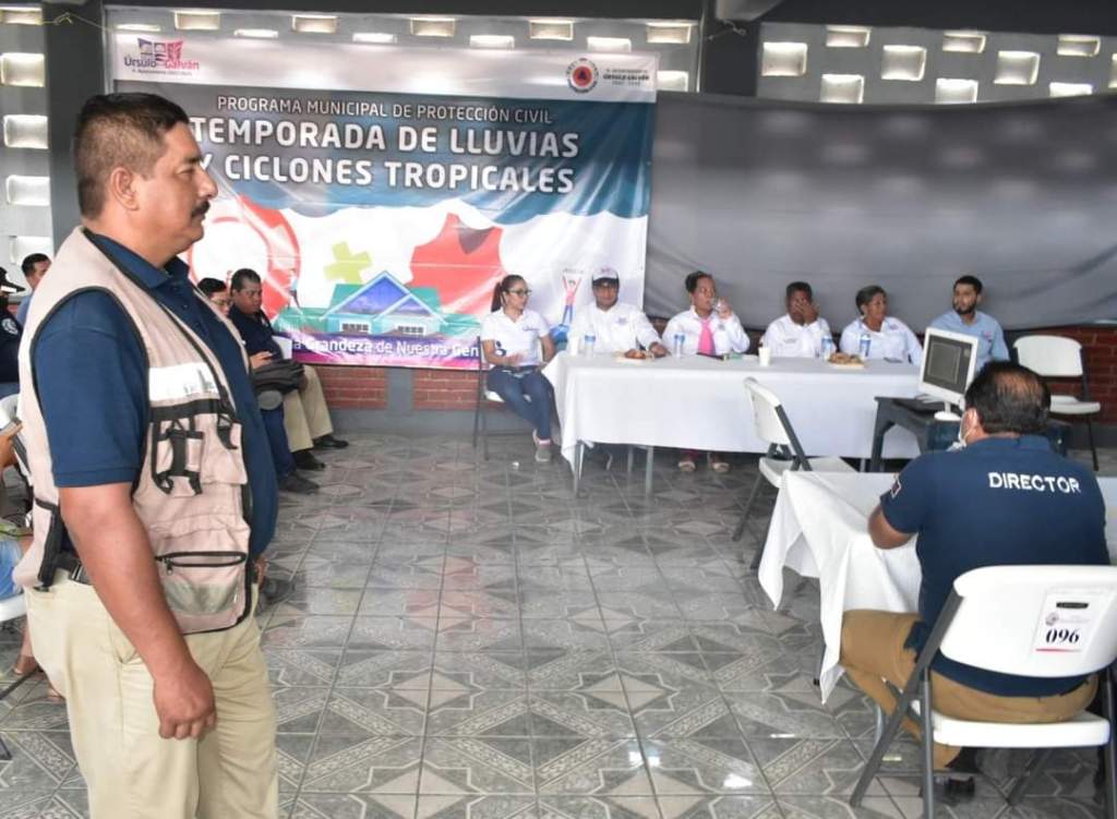 Por instrucciones del Alcalde de Úrsulo Galván, Licenciado Eder Jero Hernández Lara, los operativos de protección civil expusieron a las autoridades y agentes municipales presentes las bases para efectuar un proceso de concientización en la población, con la finalidad de brindar la orientación para la prevención, el auxilio y la recuperación en caso de inundación.
