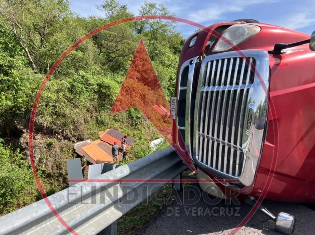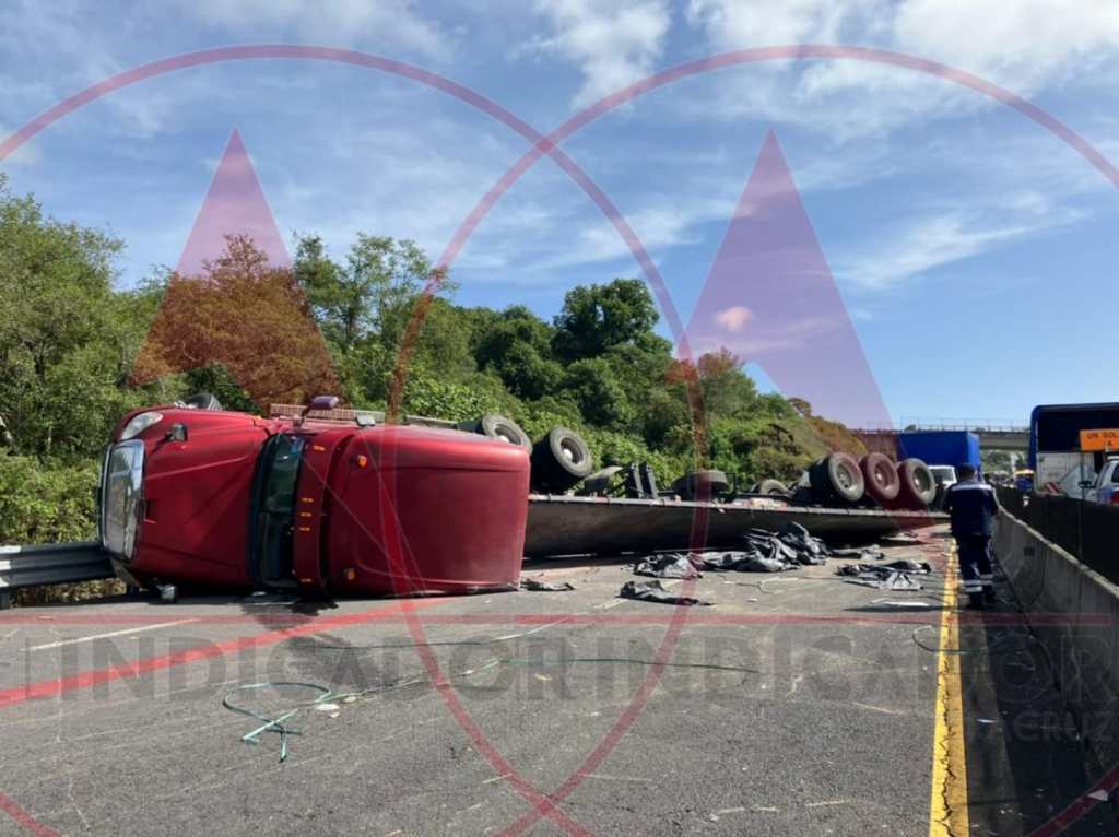La mañana de este martes, un tráiler terminó volcado sobre la autopista Xalapa – Perote, a la altura de la comunidad de Linderos, en el municipio de Jilotepec.