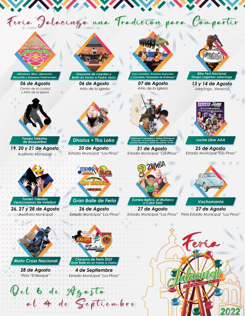«Es un cartel completo, donde hay eventos para toda la familia, queremos que las y los Jalacinguenses, así como todas las personas que nos visiten, disfruten de unos días llenos de alegría y diversión», comentó ante las cámaras el Presidente Municipal.