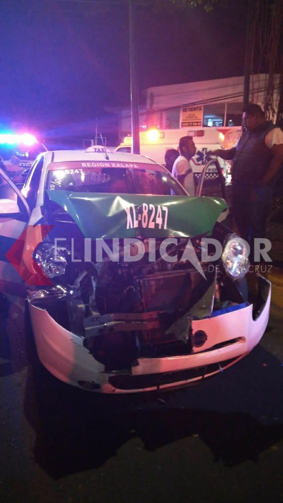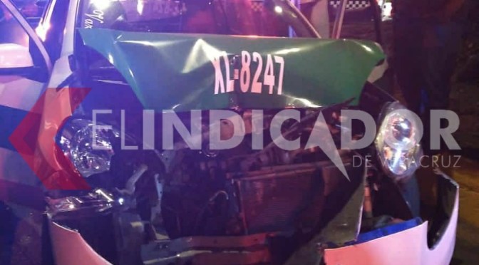 La madrugada de este domingo, ocurrió un aparatoso accidente entre un taxi y una camioneta, mientras circulaban sobre la avenida Maestros Veracruzanos, a la altura de la calle Guillermo Prieto.