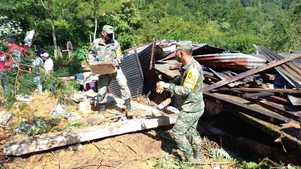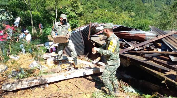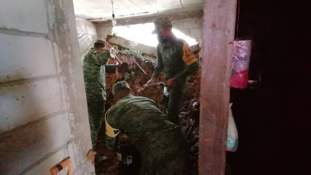 Por lo anterior este Mando Territorial, mantiene coordinación con las autoridades de los tres Órganos de Gobierno a fin de apoyar a la población afectada durante el referido derrumbe, en el cual personal Militar ha removido 3 M³ de lodo, basura y escombros que ingresaron a 3 viviendas afectadas, en dónde 1 persona de sexo masculino perdió la vida.