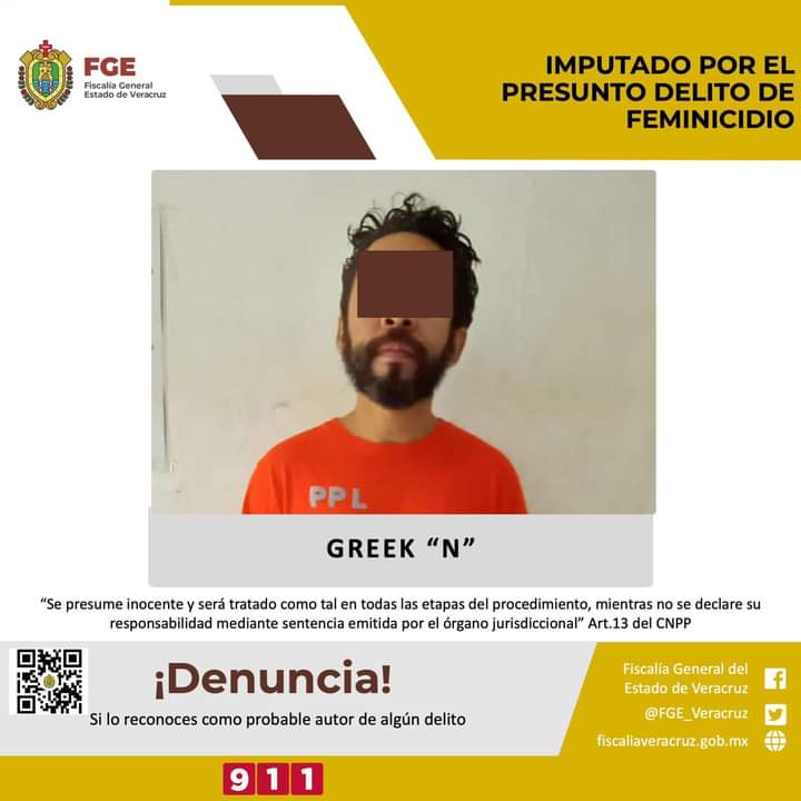 Xalapa, Ver; 2 de agosto de 2022.- La Fiscalía General del Estado informa, que a través de la Fiscalía Especializada en Investigación de Delitos Cometidos en Contra de la Familia, Mujeres, Niñas y Niños y Trata de Personas, obtuvo de un juez de control de proceso y procedimiento penal oral del distrito judicial con sede en la ciudad de Veracruz, imputación en contra de Greek “N”, por el presunto delito de feminicidio cometido en agravio de la víctima originaria del estado de Tlaxcala, con iniciales M.O.C., en ese entonces de 17 años de edad, hechos suscitados el pasado 15 de mayo del presente año en el inmueble ubicado en la Avenida Veintidós de Marzo, número 293, interior D, de la Colonia Ignacio Zaragoza, de ese municipio, dentro del proceso penal 669/2022-B.