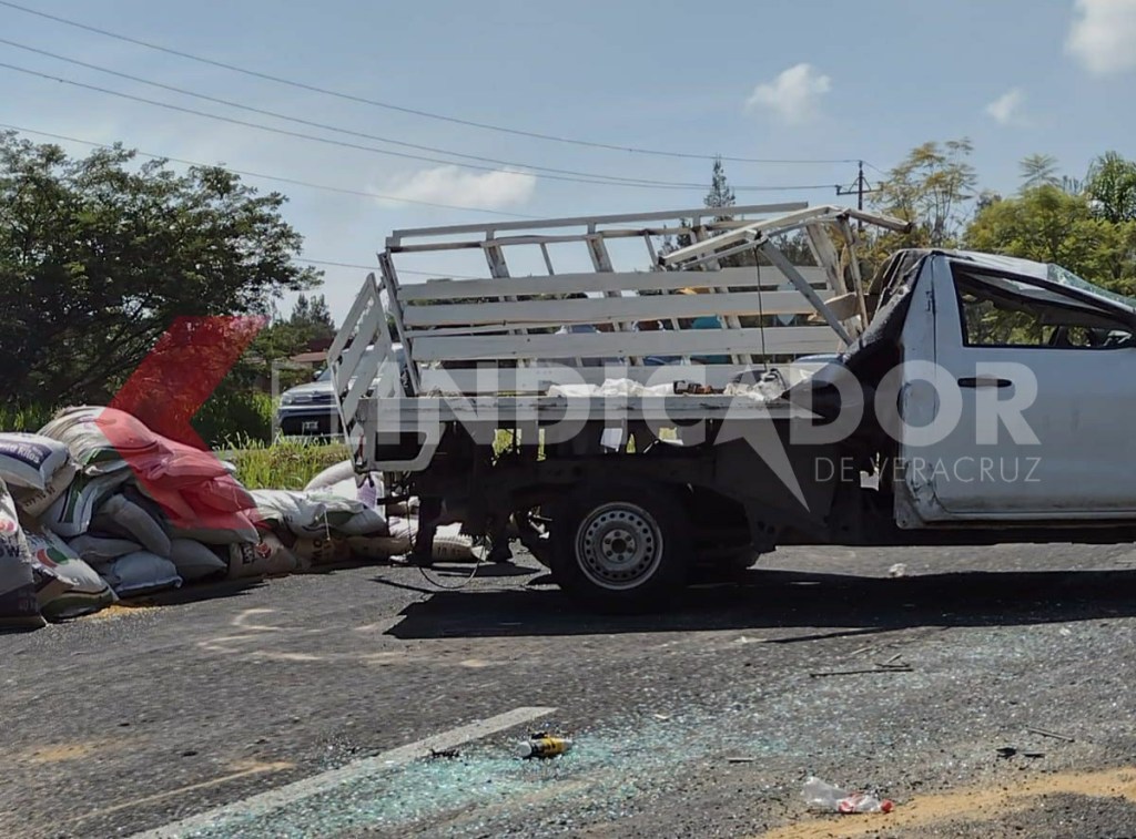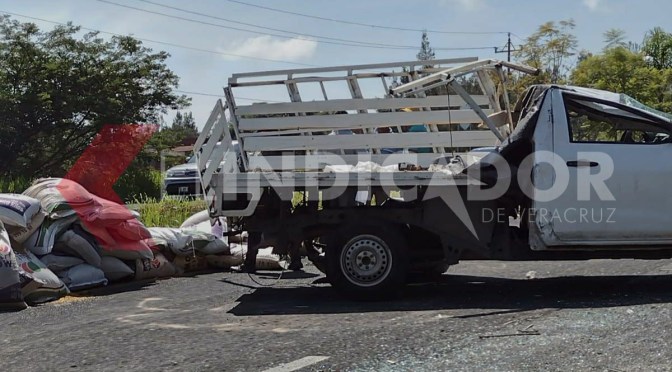 Una camioneta que transportaba alimento para ganado, volcó cuando circulaba por la carretera Xalapa – Veracruz, a unos metros del Batallón Militar, en el carril con rumbo al Puerto.