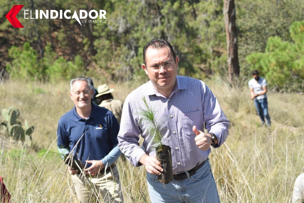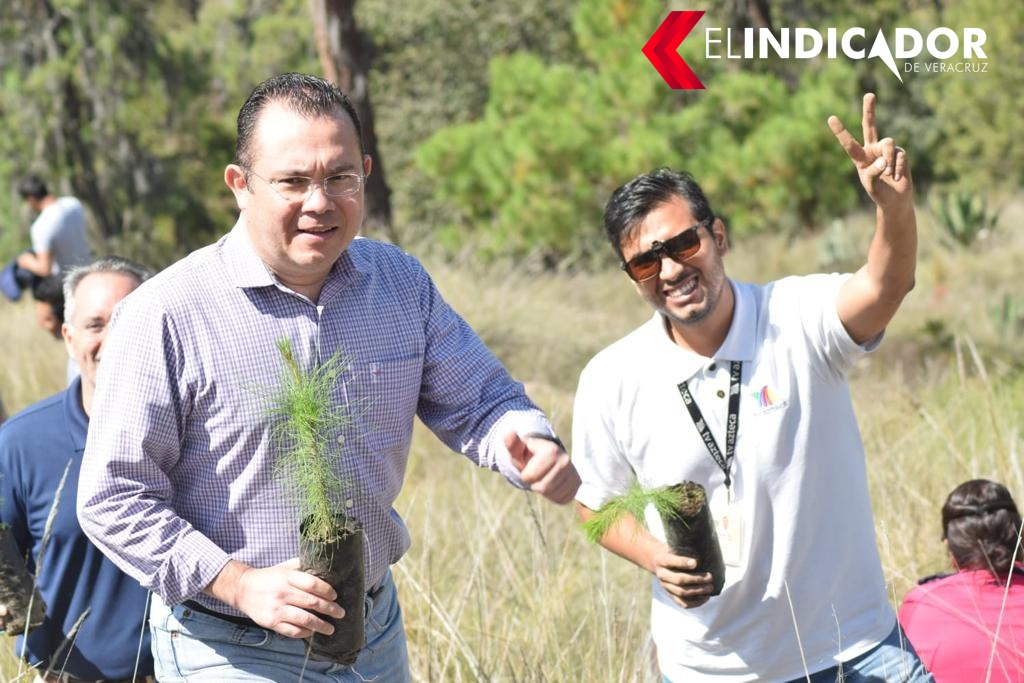 Perote Ver.- La Comisión Nacional Forestal (CONAFOR), la Secretaria de Medio Ambiente (SEDEMA), Grupo Salinas y Fundación Azteca, el Ayuntamiento de Perote, participaron en la campaña de reforestación “Un Nuevo Bosque”, en el Ejido Perote con la plantación de 1 mil 500 arbolitos.