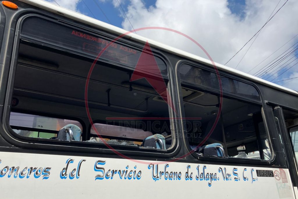 Por la vialidad pasó el camión marcado con el número económico 39, el cual chocó por el costado derecho con la varilla, rompiendo varias ventanas.