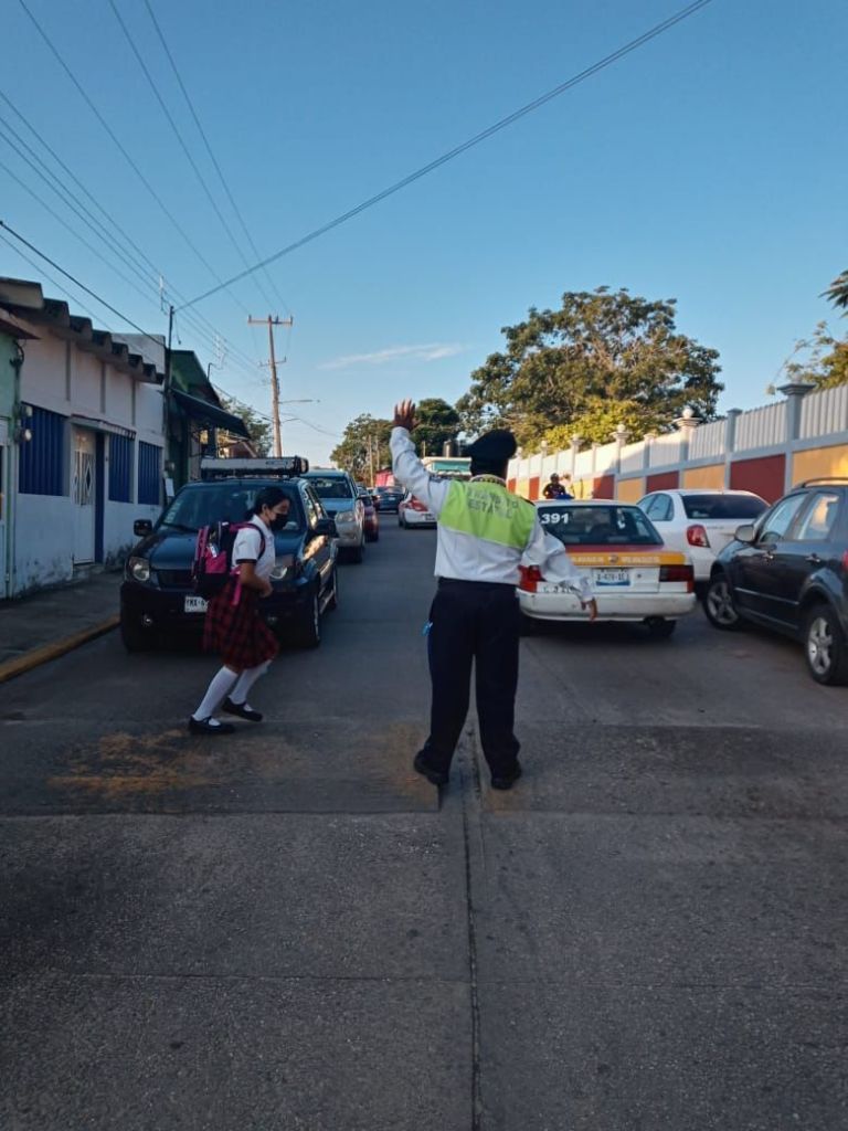 Xalapa, Veracruz., 29 de agosto de 2022.- Con el objetivo de reforzar las acciones en materia de seguridad vial y optimizar las condiciones para el regreso a clases presenciales de la comunidad estudiantil, la Secretaría de la Seguridad de Seguridad Pública (SSP), a través de la Dirección General de Tránsito y Seguridad Vial del Estado (DGTSV), implementó el operativo «Escuela Segura», con el cual fueron desplegados 600 agentes de tránsito para realizar tareas de vialidad en los diversos planteles educativos de la entidad.