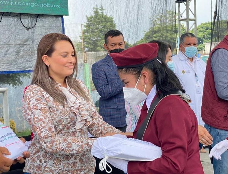 Entregaron Bono escolar en Jalacingo y en dicha entrega acompañaron al Presidente Municipal, Roberto Perdomo Chino, el Diputado Local Paul Martinez Marie, Merida Villa Salazar y el Secretario de Gobierno, Eric Cisneros Burgos.