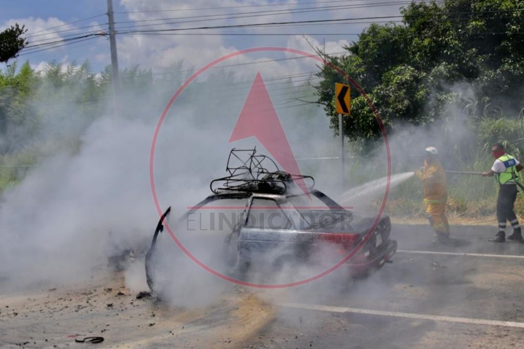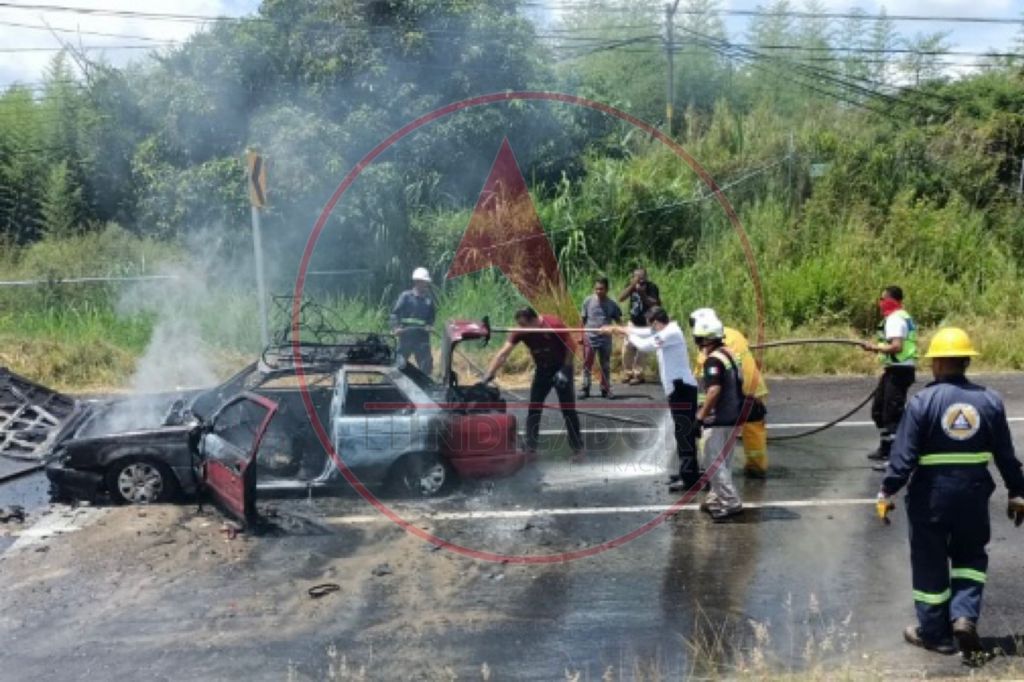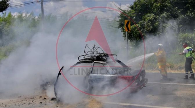Debido a que se sobrecalentó, un automóvil ardió en llamas en la carretera Xalapa – Veracruz, a la altura de la localidad de Dos Ríos, en Emiliano Zapata.