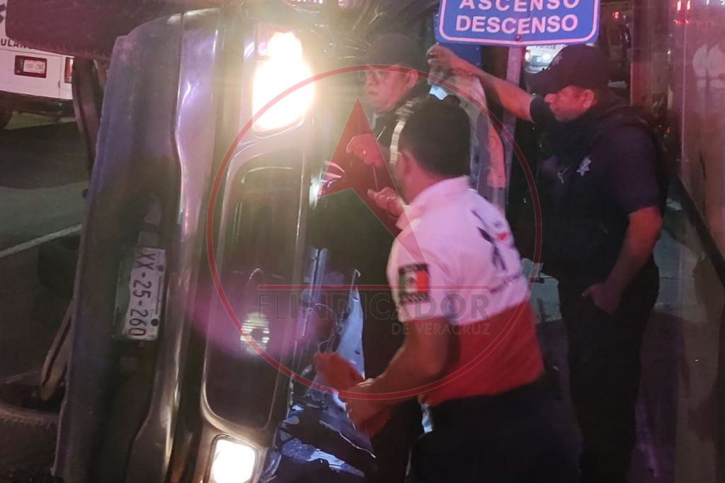 Una camioneta de carga, se volcó cuando circulaba por el bulevar Xalapa – Banderilla, a la altura del Río Sedeño.