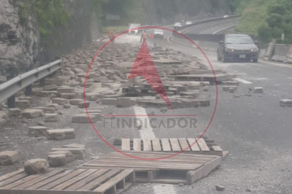 La tarde de este lunes, se registró la volcadura de tráiler que transportaba block, cuando circulaba por la carretera Xalapa – Veracruz, a la altura de Plan del Río.