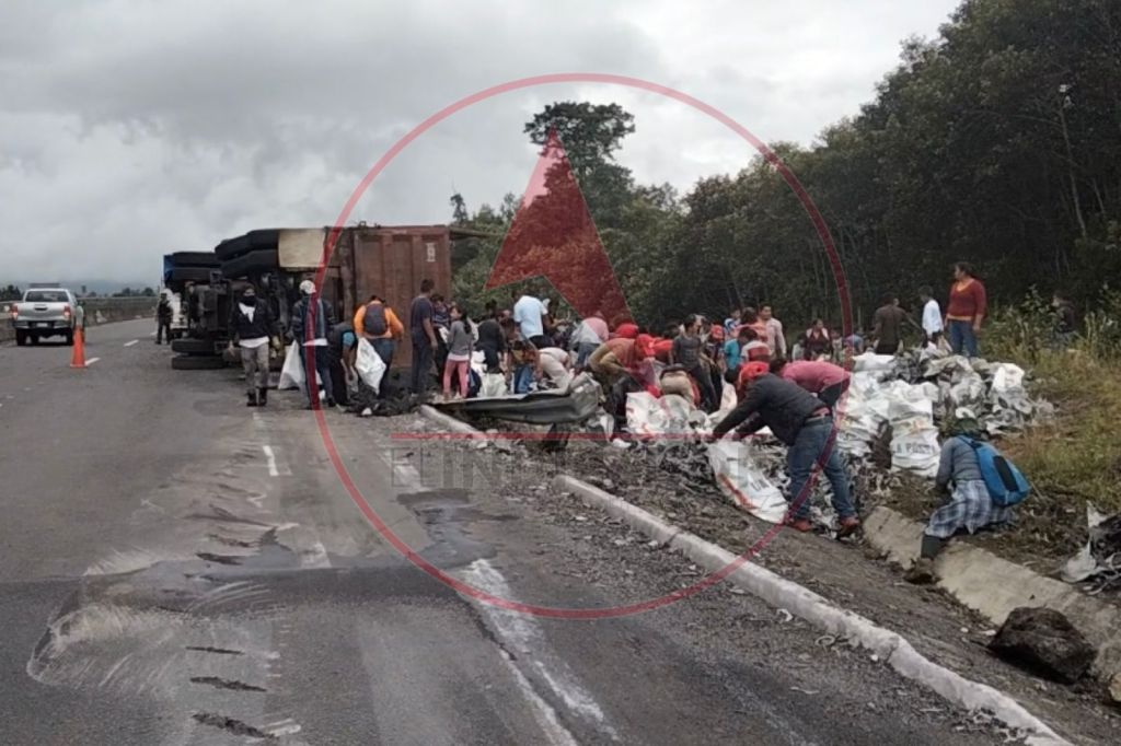 Esta tarde de jueves, se registró la volcadura de un tractocamión que transportaba chatarra, en la autopista Xalapa – Perote, a la altura del municipio de Tlacolulan.
