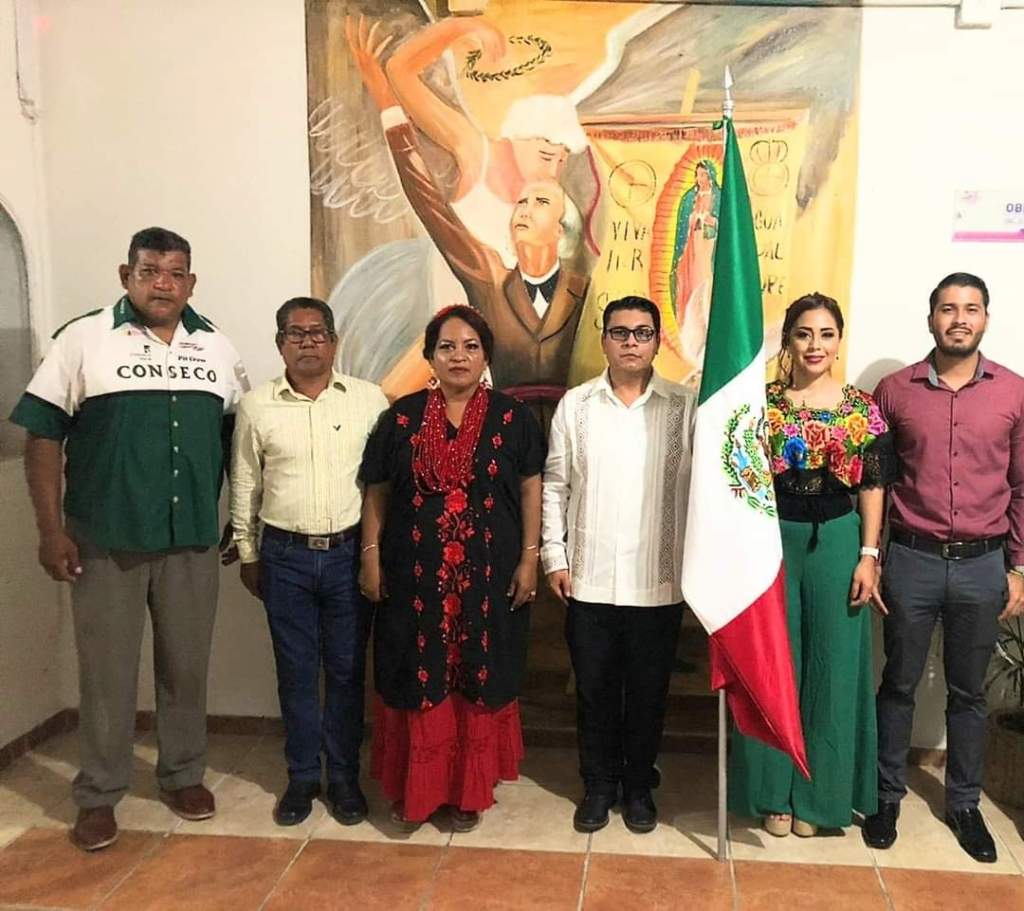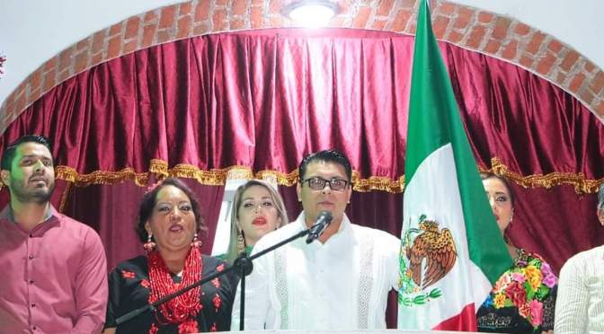 En compañía de la Síndica Única, Matilde López Castillo, el Regidor Segundo, Mtro. Cirilo Gutiérrez Delgado, el Regidor Tercero, Lic. Gilberto Lagunes Lagunes, la Presidenta del DIF Municipal, Lic. Vianney Hernández Vizuet, la Oficial del Registro Civil, C.P. Adriana Abdeljalek Lima y distinguidas autoridades locales e invitados especiales, en punto de las 23 horas, Eder Jero recibió la bandera, salió al balcón y recordó a los héroes que nos dieron la Independencia en el país.
