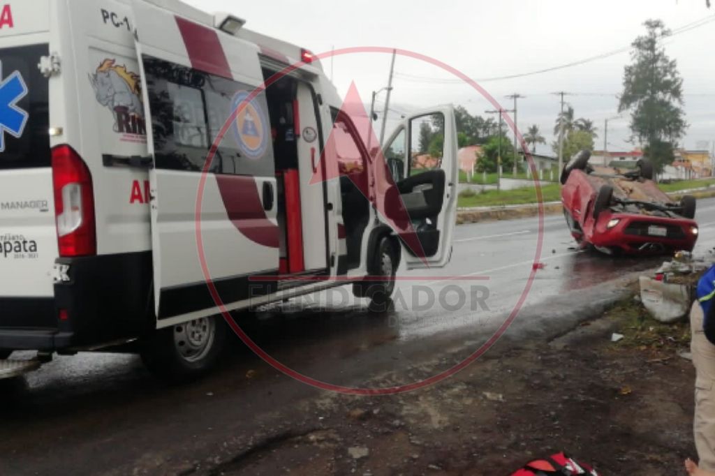 Personal de Protección Civil de Emiliano Zapata llegó de manera inmediata al punto para atender a los ocupantes del vehículo.