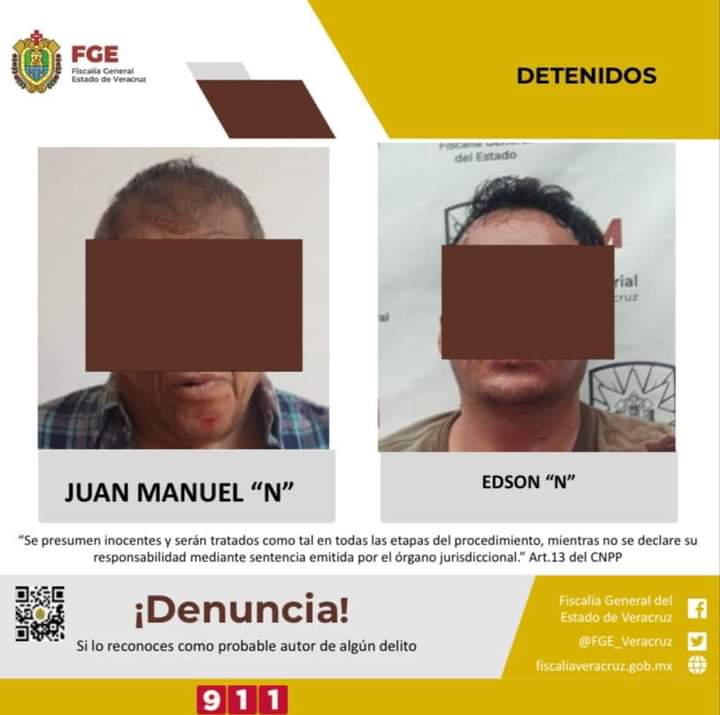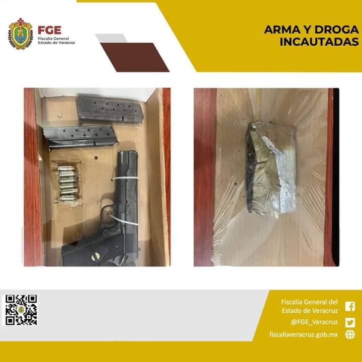 Xalapa, Ver., a 27 de septiembre de 2022.- La Fiscalía General del Estado informa que derivado de trabajos de investigación por reportes ciudadanos, elementos de la Policía Ministerial implementaron un operativo sobre la avenida Bolivia, de la colonia Buenavista II de esta ciudad, que culminó en la calle Lázaro Cárdenas y Emiliano Zapata, de la colonia Benito Juárez, en la que fueron intervenidos Edson “N” y Juan “N”, a quienes se les incautaron hierba verde con características similares a la marihuana, así como un arma de fuego con la que agredieron a los elementos policiacos, quienes enfrentaron a los presuntos delincuentes con valentía hasta lograr su detención.