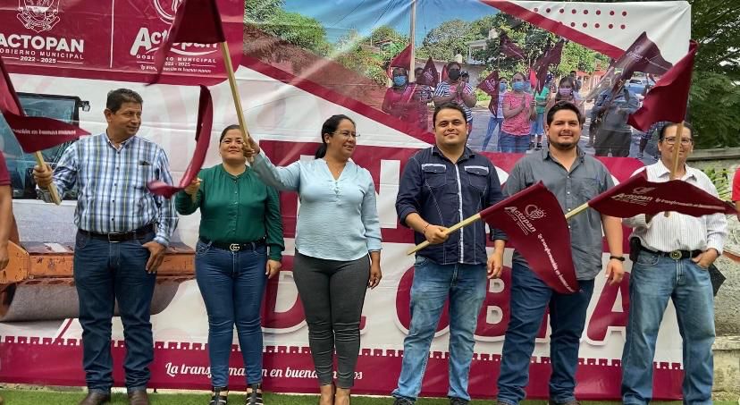 Nuestra Presidenta municipal: María Esther López Callejas, junto con la regidora: María Sivilina Guevara Herrera y los regidores: Rafael Moreno Utrera, Miguel Ángel López Rolón y Alan Ruiz Aguilar, acompañados del Subdirector de Obras Públicas: Carlos Morales, dieron el banderazo de inicio de los trabajos en la zona